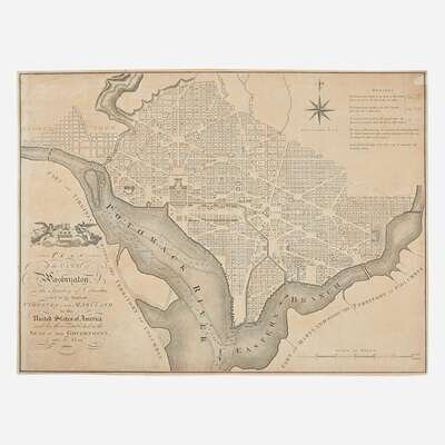 A scarce and early English printing of surveyor Andrew Ellicott's plan of Washington, D.C., based on the designs by Pierre Charles L'Efant.