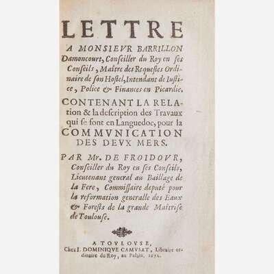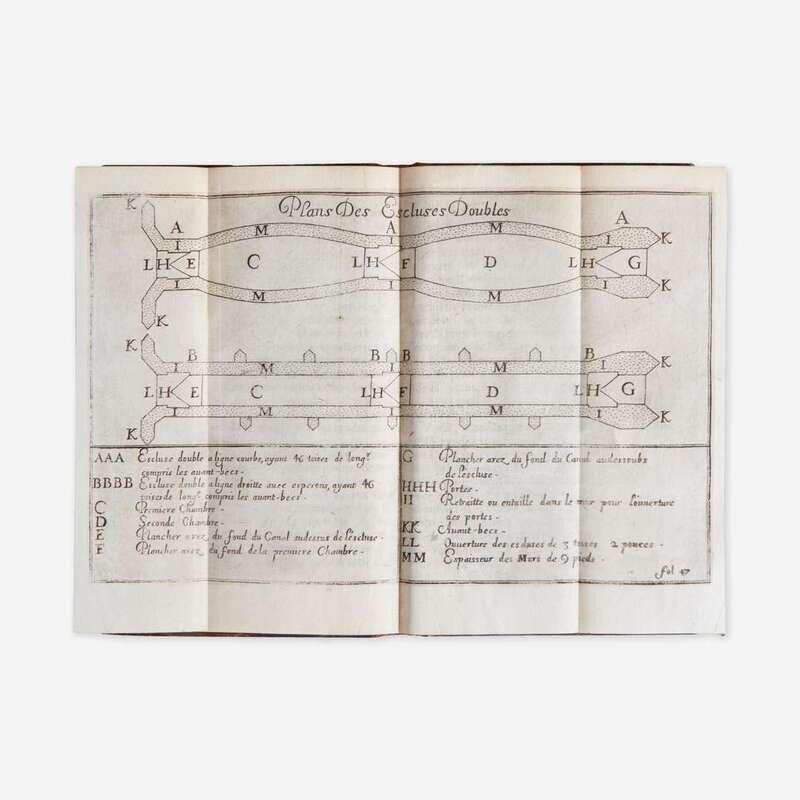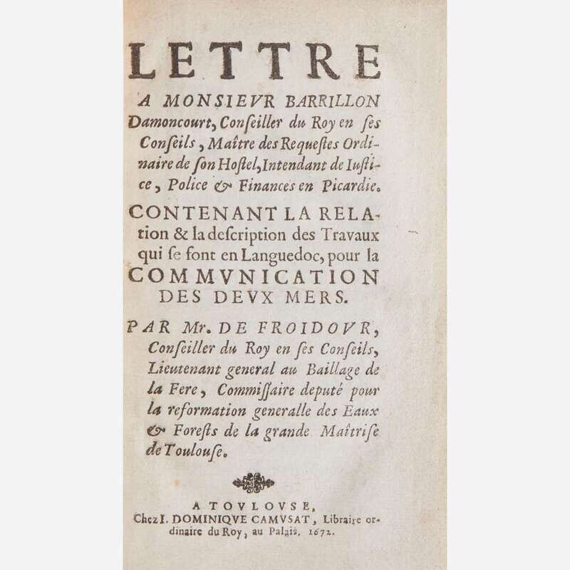 A lovely copy of this uncommon work on the construction of the Canal du Midi. The canal connects the Mediterranean Sea to the Atlantic Ocean, in Southern France, and is considered one of the greatest engineering feats of the 17th century. The Canal was declared a UNESCO World Heritage Site in 1996.