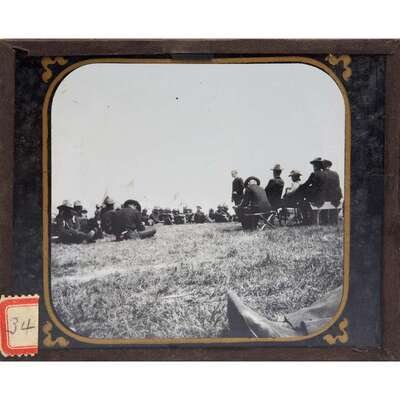 While stereoscopic views of Camp Wikoff and Tampa are fairly common, glass lantern slides are seemingly less so, and likewise, these images have not been located in the Library of Congress's various online photographic collections of the Rough Riders. Numerous photographic companies, including Strohmeyer & Wyman, Underwood & Underwood, the American Stereoscopic Company, published views of the Rough Riders at Camp Wikoff, and photojournalist Frances Benjamin Johnston (1864-1952) was particularly well known for her images of the soldiers there.