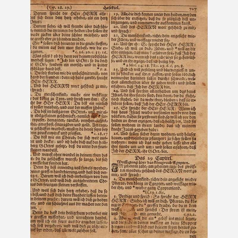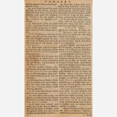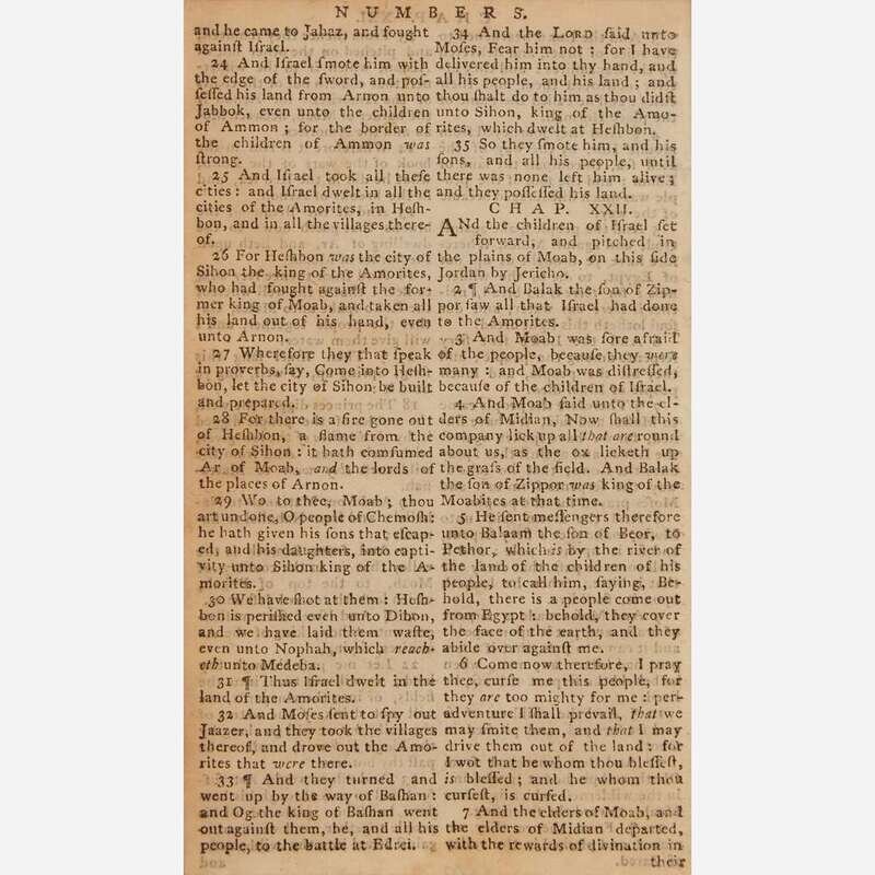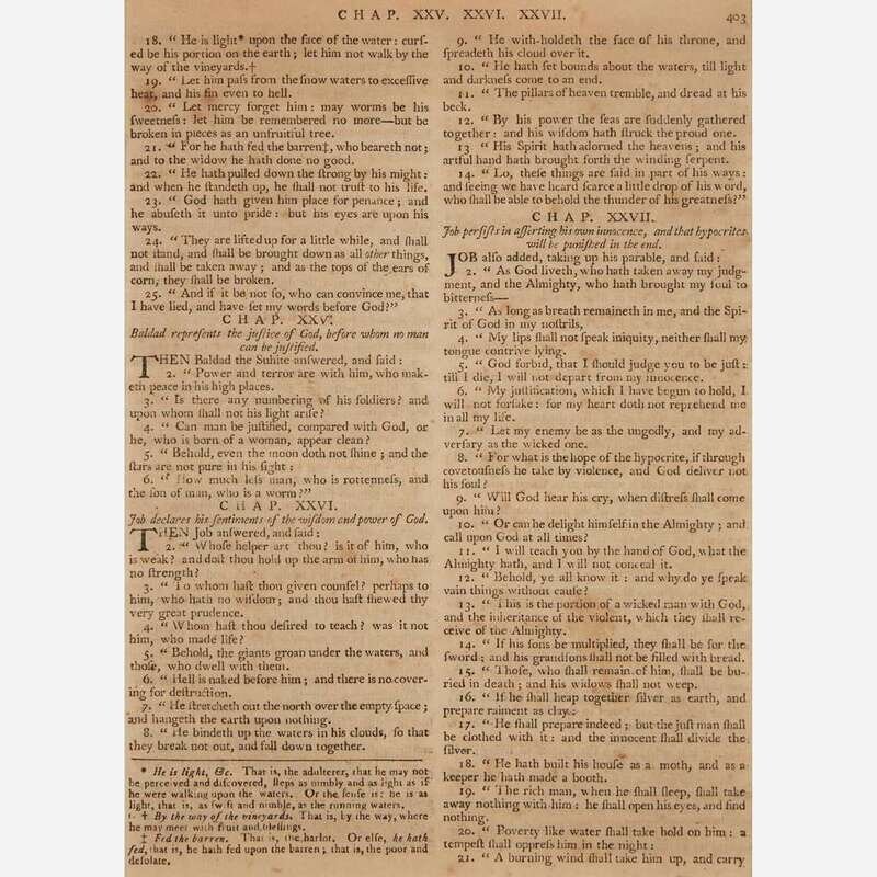 This landmark publication collects leaves of some of the most important Bibles in the history of North America and the United States, and spans over 200 years, from 1663-1878. It includes leaves from important Bibles, including the first Bible printed in America, The Eliot Indian Bible (1663); the first English Bible printed in America, by Robert Aitken (1782); the first Catholic Bible printed in America, by Matthew Carey (1790); the first illustrated Bible, by Isaiah Thomas (1791), and many more. Each leaf was removed from incomplete Bibles from the collection of bibliophile Michael Zinman. "The original leaves are divided into four groups: first, Bibles in the languages of the native peoples of America; second and third, Bibles in English from the eighteenth and nineteenth centuries; and fourth, Bibles in other languages." (from the prospectus). An impressive production.