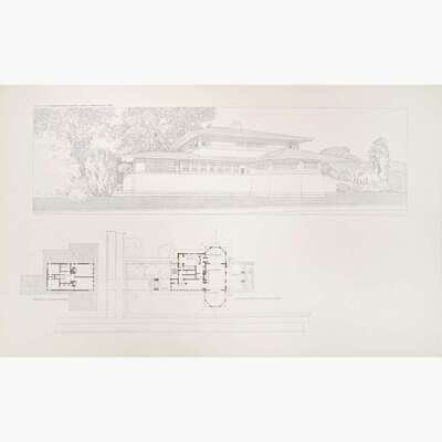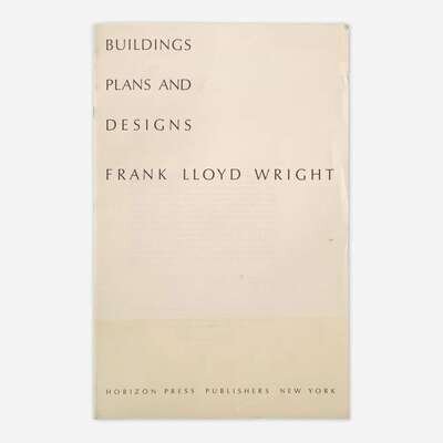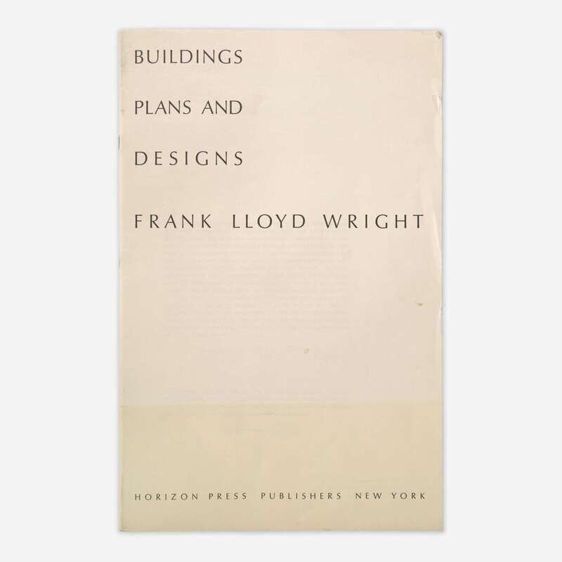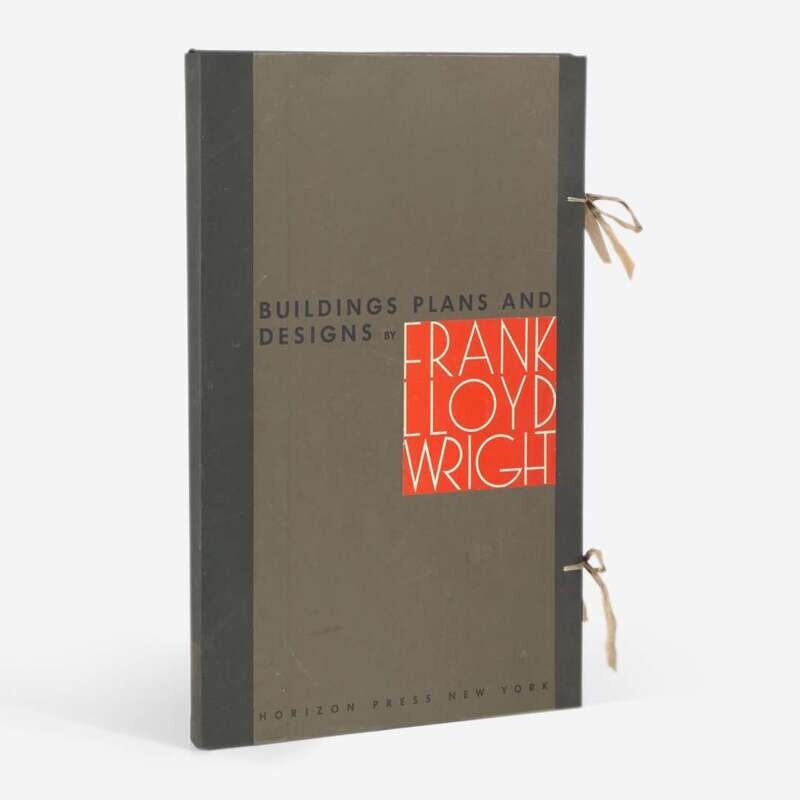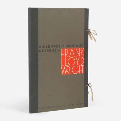 New York: Horizon Press Publishers, (1963). First American edition, #273 C/2,600 numbered copies. Foreword by architect William Wesley Peters, Introduction by and plate list with notes by Wright. Illustrated with 100 numbered plates of plans and drawings by Wright, each loose as issued and measuring 25 1/4 x 15 7/8 in. (641 x 403 mm). Plates and booklet housed in original printed paper chemise, within quarter black cloth over grey paper-covered board portfolio, minor wear and fading to boards and spine; original silk ties intact; Plate 1 with offsetting from paper chemise; booklet with offsetting from cloth portfolio, scattered wear to same. Sweeney 1534 and 87