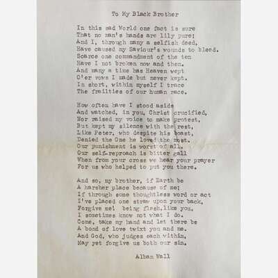 A carbon copy of the poem Wall sent to King, entitled "To My Black Brother", is stapled to this letter. Wall's letter to Dr. King transmitting his poem is currently not located.