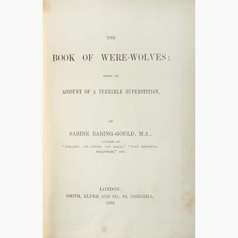 A stunning copy of this very scarce classic work on the history and mythology of the were-wolf. Considered a standard on the subject, Baring-Gould traces the were-wolf through its shape-shifting ancient and medieval origins, through traditions in Scandinavian, English, French, Russian, and Indian mythology, and examines historical cases of lycanthropy and its relation to violence.