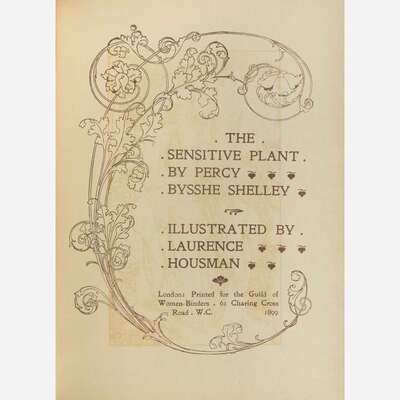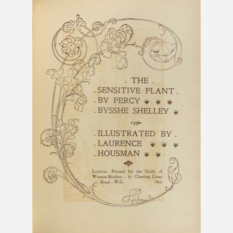 London: Printed for the Guild of Women-Binders, 1899. First and limited edition, #22 of only 50 numbered copies on vellum. 8vo. 60 pp. Illustrated with an engraved frontispiece and 11 engraved plates by Laurence Housman. Original full brown niger, tooled in gilt foliate patterning on front and rear boards, joints, extremities, and spine ends rubbed, abrasion at bottom of rear board, scattered minor soiling to boards; edges stained green and subtly and charmingly tooled in gilt; by the Guild of Women-Binders; old ownership signature on front paste-down; original Guild of Women-Binders printed slip laid in.