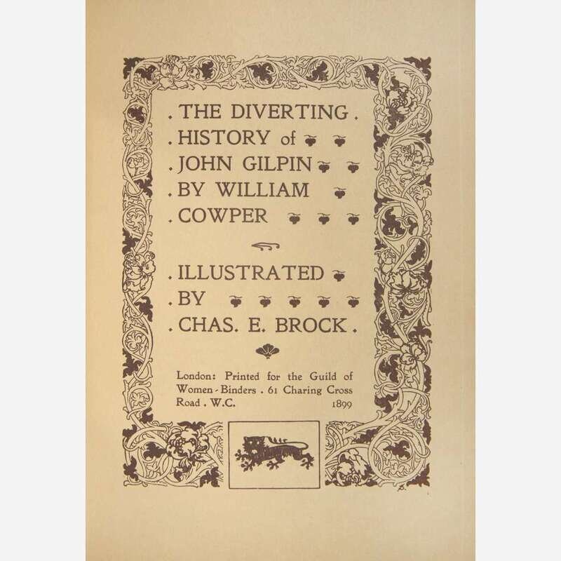 London: Printed for the Guild of Women-Binders, 1899. First and limited edition, #98 of only 100 numbered copies on vellum. 8vo. 49, (1) pp. Illustrated with an engraved frontispiece, 11 engraved plates, and numerous in-text and head-piece engravings, by Chas. E. Brock. Original full brown niger, tooled in gilt foliate patterning on front and rear board, joints and corners lightly rubbed, scattered light soiling to boards; edges stained green and subtly and charmingly tooled in gilt; by the Guild of Women-Binders; old ownership signature on front paste-down; plate facing p. 22 loose; original Guild of Women-Binders printed slip laid in.
