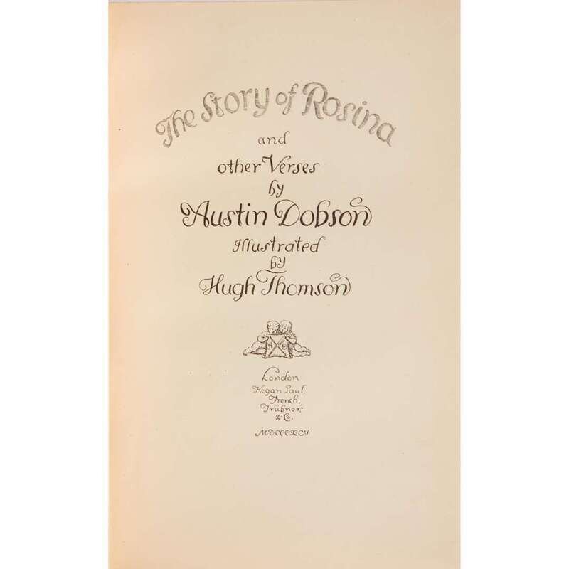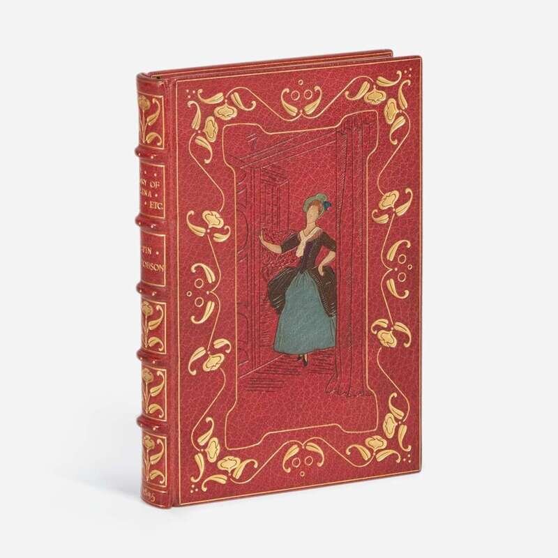 London: Kegan Paul, Trench, Trübner, & Co., 1895. First edition. 8vo. (xvi), 120 pp. Illustrated with an engraved frontispiece, 31 engraved plates, and 17 engraved head-pieces, by Hugh Thomson. Beautifully bound in full crushed crimson levant, stamped in black and in gilt; green, beige, brown, black, and blue onlays on front board, depicting the titular character Rosina (after the plate facing p. 8); all edges gilt; green silk endleaves; by Kelliegram; original cloth bound in at rear; in cloth box, worn.