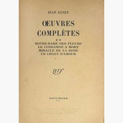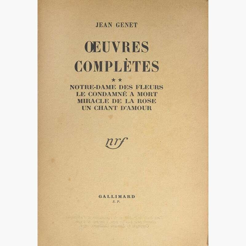 The first volume of Genet's Complete Works, featuring some of his most celebrated titles, including Our Lady of the Flowers (Notre-Dame des Fleurs), Miracle of the Rose (Miracle de la Rose), A Song of Love (Un chant d'amour), and The Man Sentenced to Death (Le Condamné à Mort).