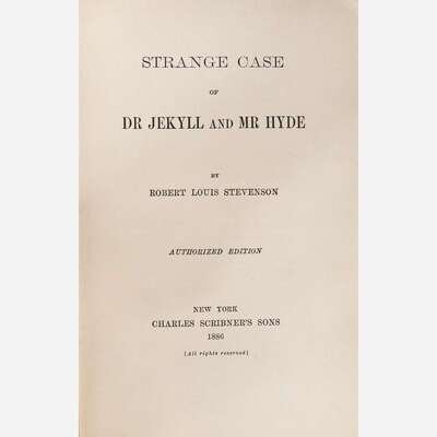 An exceptional copy of the first edition of Stevenson's classic gothic novella. This edition preceded the first English edition by only four days, and was published on January 5, 1886 in an edition of 1,250 copies in cloth and 3,000 copies in paper wrappers.
