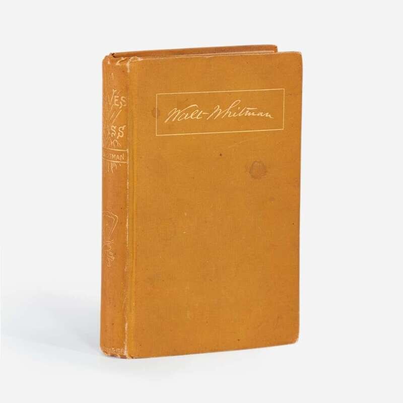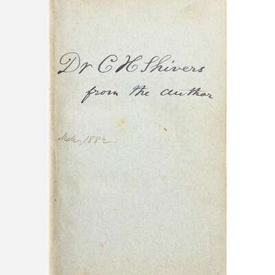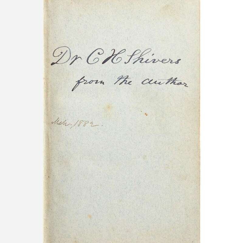 Boston: James R. Osgood and Company, 1881-82. First edition thus, first printing, printing A (one of 1,010 copies printed), more commonly known as the "suppressed Boston edition" (seventh edition overall). 8vo. 382 pp. Presentation copy, inscribed by Whitman on front free endpaper: "Dr. C H Shivers/from the author". Illustrated with an engraved portrait of Whitman, facing p. 29. Original mustard cloth, stamped in gilt, soiling to boards, extremities and joints rubbed, light wear to spine ends, short band of fore-edge of rear board affected by damp; all edges trimmed; mottled light blue endpapers; pp. 171-190 slightly proud. BAL 21418