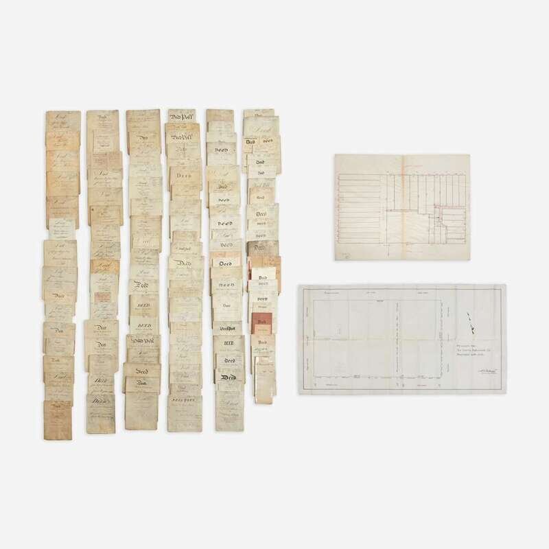 A large archive of land deeds and other documents detailing the transformations of one historic block in Center City Philadelphia, now site of The Curtis Center