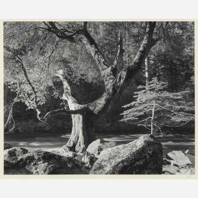 1950, printed later. Gelatin silver print. Initialed by Adams in pencil below print, on mount bottom right; Adams's studio ink stamp, verso: "Special Edition/Photographs of Yosemite/By Ansel Adams..." Print mounted to card, as issued; initials slightly faded. 13 1/2 x 16 1/8 in. (343 x 409 mm). In mat and in frame, 15 1/4 x 16 3/4 in. (387 x 425 mm).