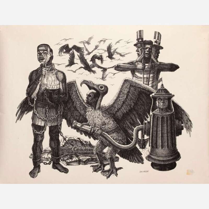 A rare and complete set of Billy Morrow Jackson's (1926-2006) "Protest Drawings," posters, made as a fundraising project for civil rights organizations like the Student Nonviolent Coordinating Committee during the Civil Rights Movement.