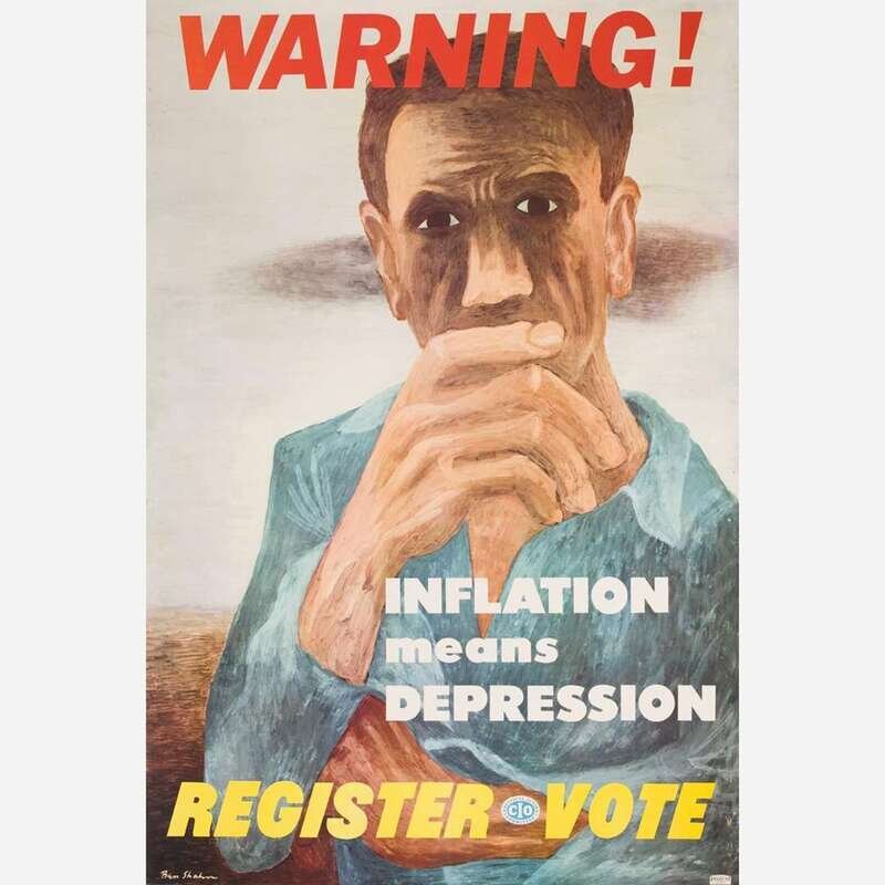A powerful poster, created by Shahn for the pro-labor Political Action Committee of the Congress of Industrial Organizations and the Democratic Party during the United States midterm elections of 1946