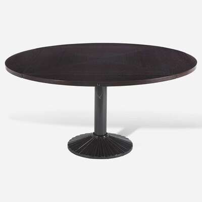 Hinged table leaves allow for square, elliptical, or round configurations