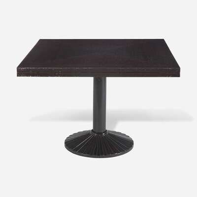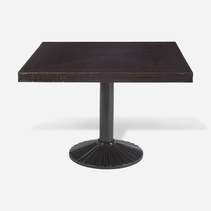 Oak veneer top with Wenge finish, black-painted cast iron base