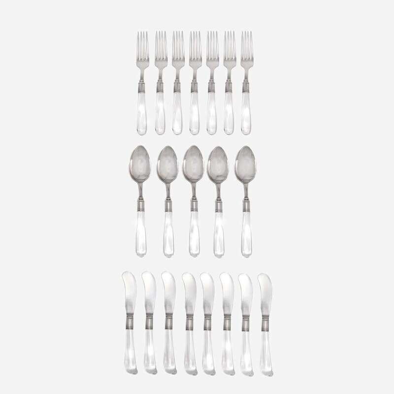 Designed by Frederick Carder (British, 1863-1963) Twenty-Piece Partial Glass-Handled Flatware Set, Steuben, Corning Glass Works, Corning, New York, circa 1929