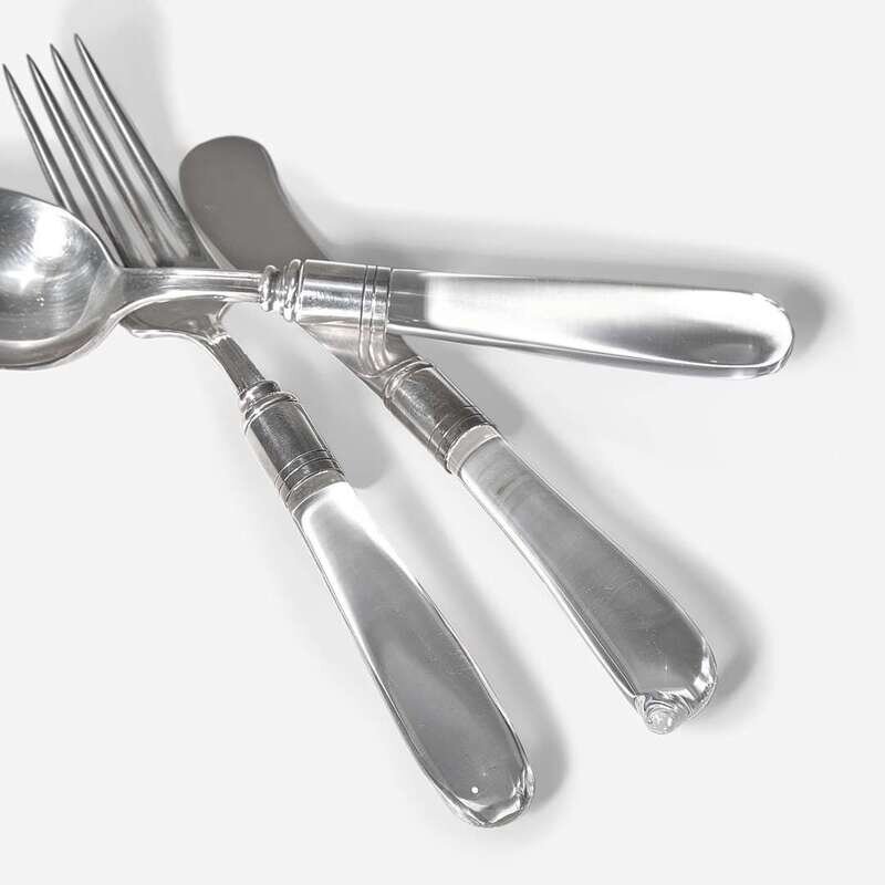 Comprised of seven dinner forks, five dinner spoons, and eight butter knives