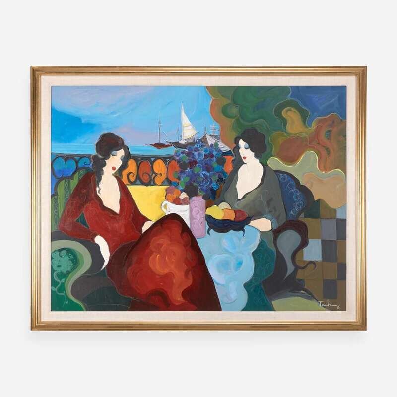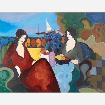 Itzchak Tarkay (Israeli, 1935-2012) Women near the Harbor