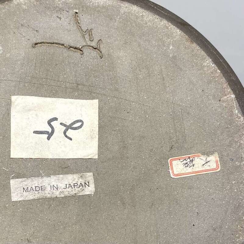 Tall Japanese vase with inscribed Japanese signature, applied paper label with Japanese characters, applied paper label; "Made in Japan", applied paper label: "25"
