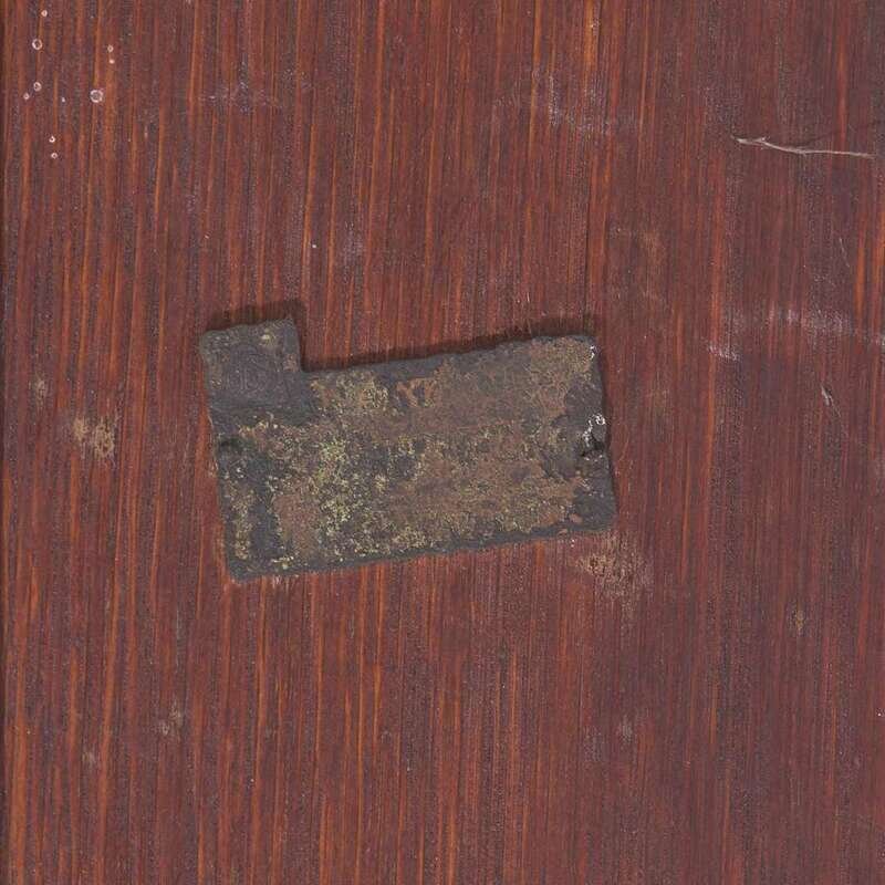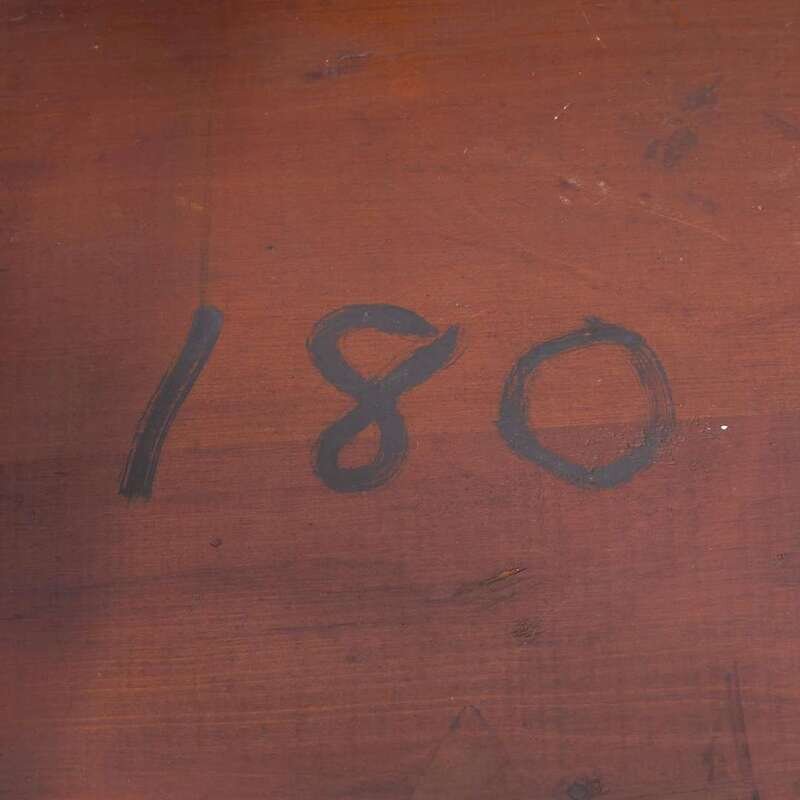The underside of lamp tabletop with handwritten marking in black paint: "180"