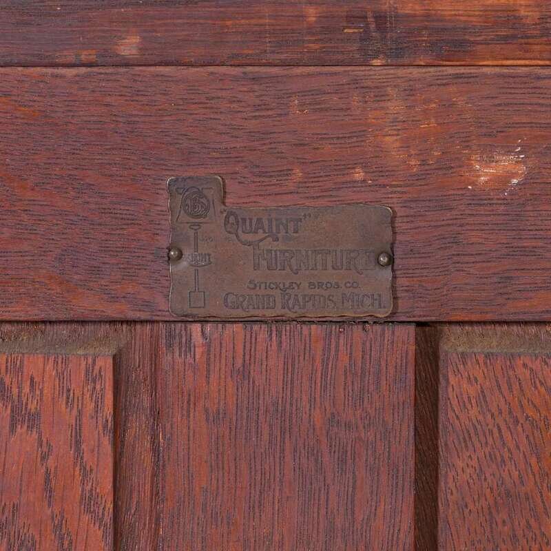 The fall-front desk with metal plaque: "'Quaint' Furniture / Stickley Bros. Co. / Grand Rapids, Mich."