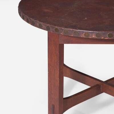 Stickley Brothers (American, active 1891-1954) A Fall-Front Desk, Library Table, and Lamp Table Model No. 180, USA, circa 1905