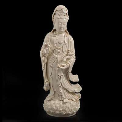 A large Dehua blanc de Chine figure of Guanyin 德化窑观音像 20th century ????