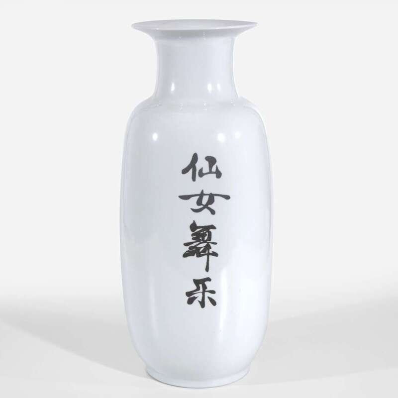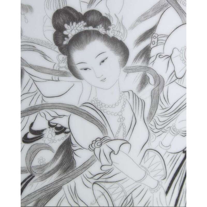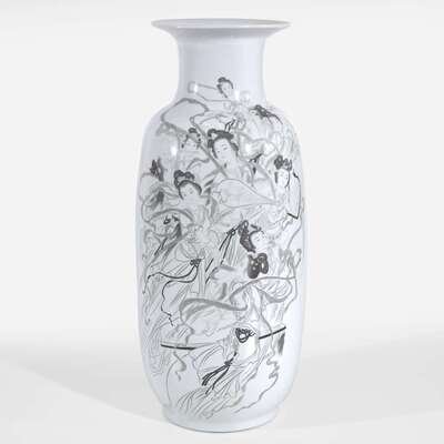 A large and unusual Chinese engraved porcelain "Xiannv wu yue" vase 仙女舞乐瓷瓶 Late 20th/21st century ????????????