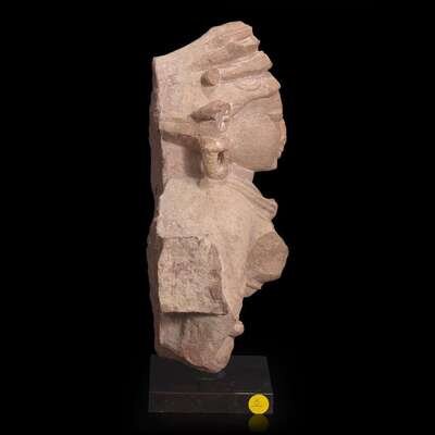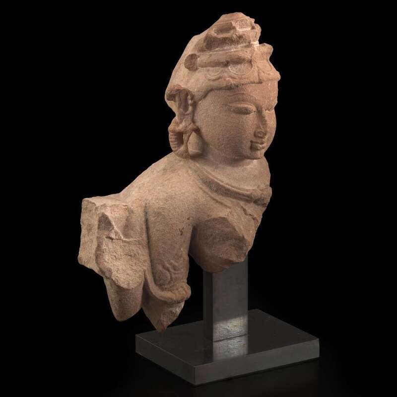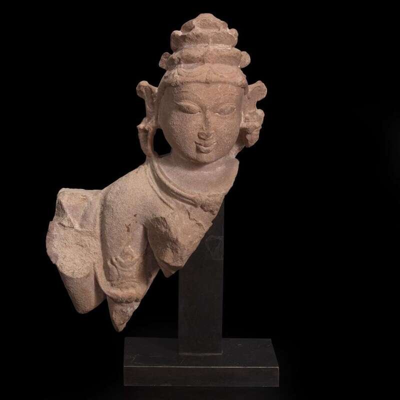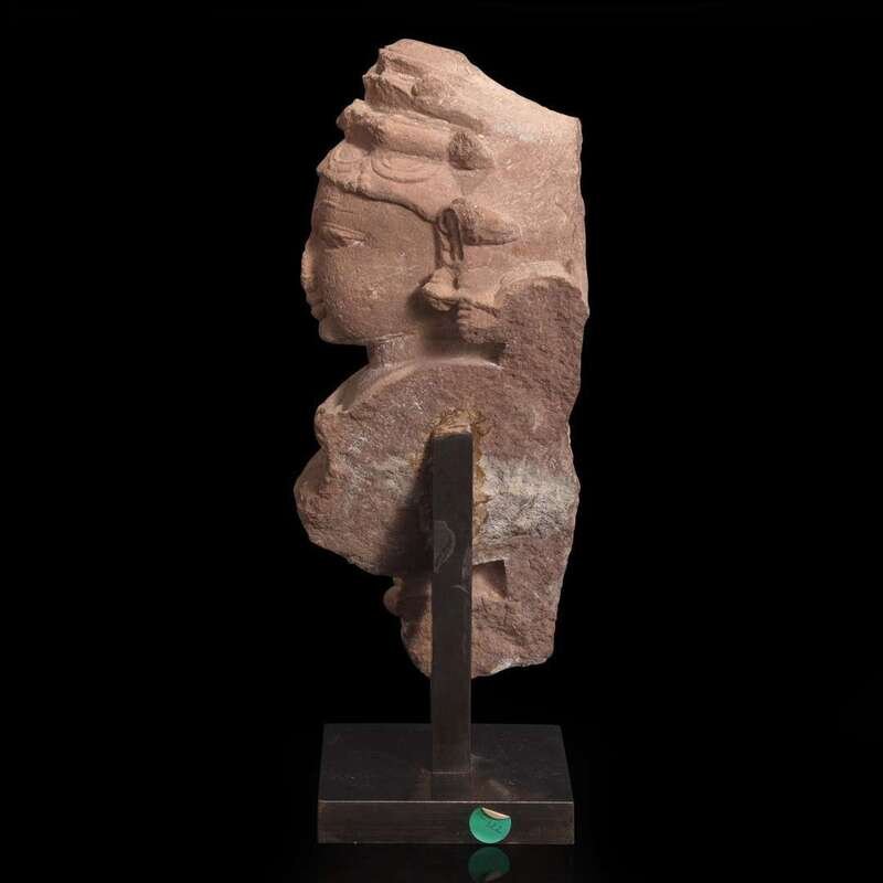 An Indian carved pinkish-buff sandstone bust of a female deity 砂岩雕女神像 Uttar Pradesh, 10th / 11th century ??? ??????