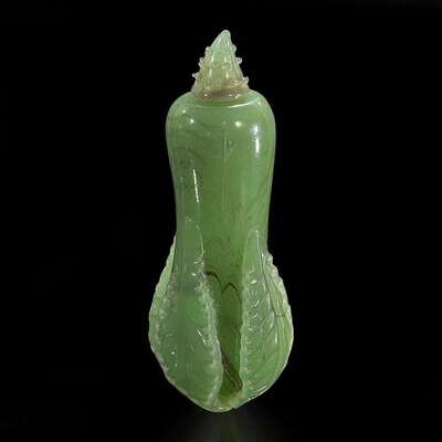 An unusual Chinese green glass “Gourd” snuff bottle 琉璃丝瓜形鼻烟壶