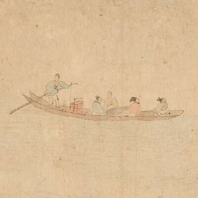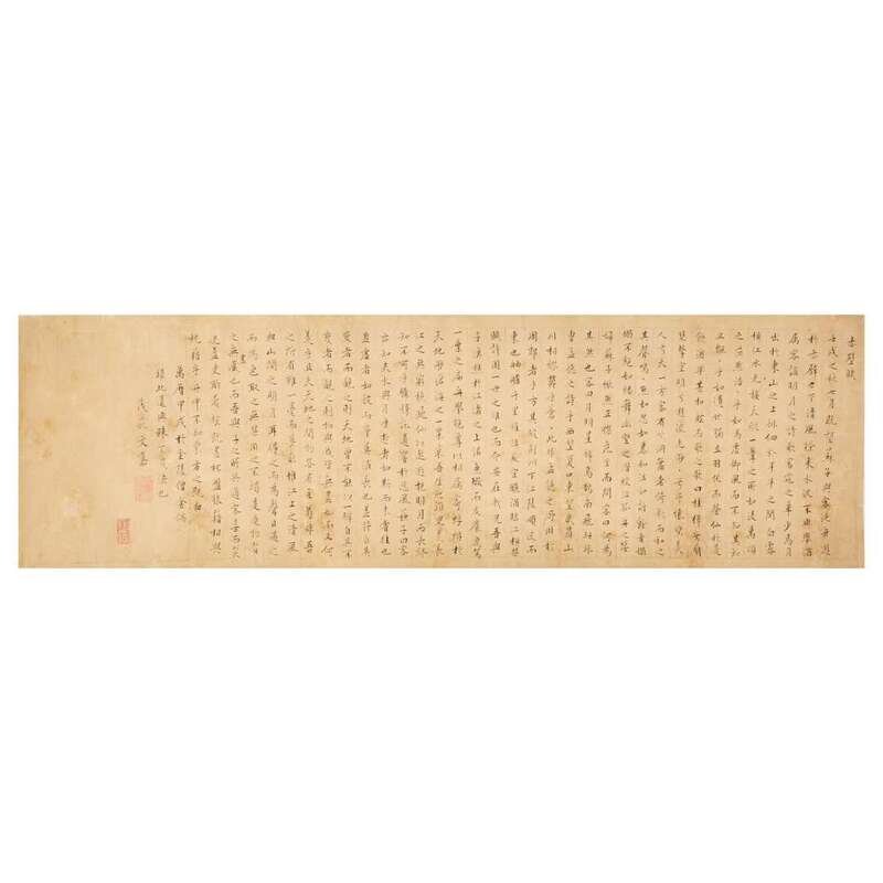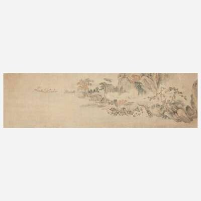 Ink and color on paper, mounted as a hand-scroll, with colophon; colophon inscribed Wen Jia, and with two seals lower left (one a collector's seal of Alice Boney)
