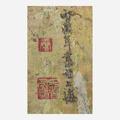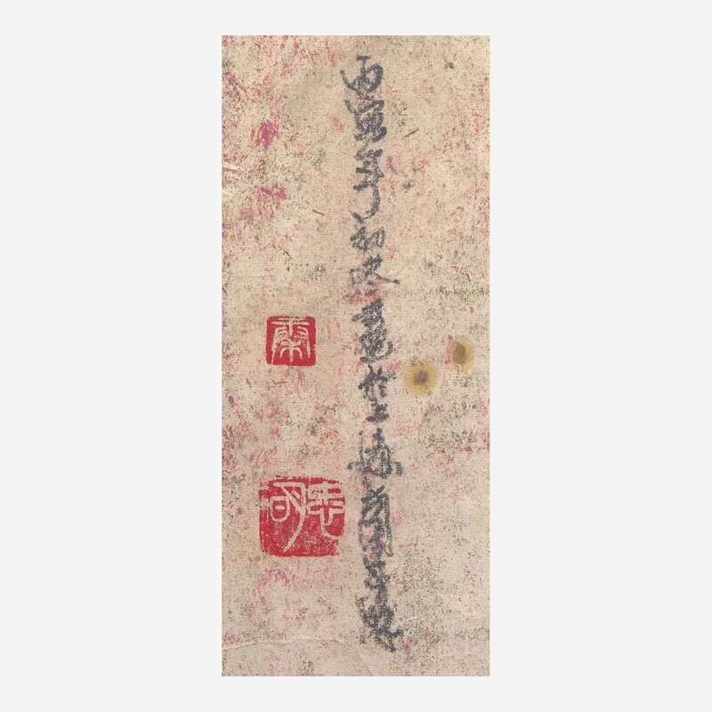 Oil on handmade Xuan-type paper, both inscribed and with two seals upper left, a third seal lower right; framed and glazed.
