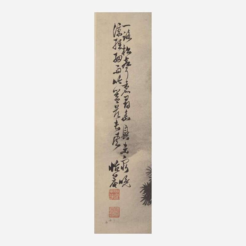 Ink on paper, inscribed and with two seals upper left, mounted as a hanging scroll.