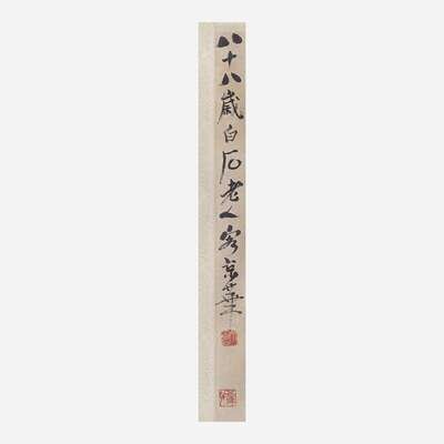Ink and color on paper, inscribed "Bashiba sui (eighty-eight years old [equivalent to 1951/1952, but likely painted in 1949]), Laoren...Jinghua (Beijing)", and with two seals upper left; mounted on silk, framed and glazed.