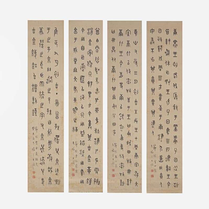 Wang Ti 王褆 金文彝器书法四幅 (Chinese b.1880-d.1960)