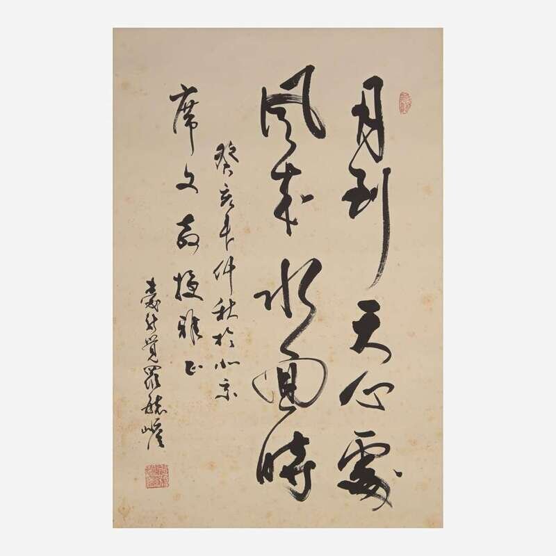 Ink on paper, inscribed and with one seal lower left, another seal upper right, dedicated to Xi Wen (Dr. Nathan Sivin), dated to a Kuihai year, corresponding to 1983, mounted as a hanging scroll.