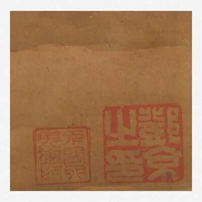 Ink on paper, one inscribed and with one seal upper right, two additional seals to lower right; the second inscribed and with two seals lower left, two additional seals lower right; mounted as hanging scrolls.