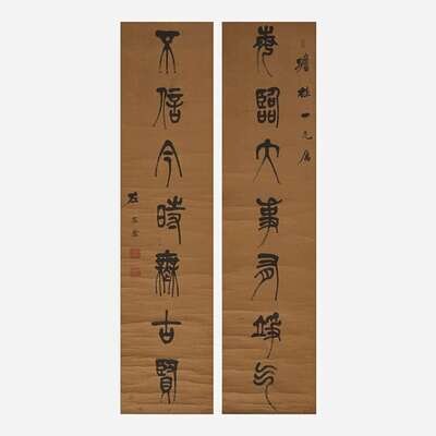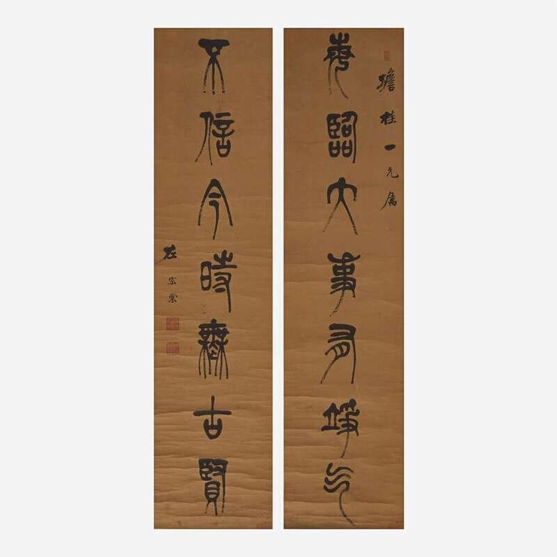 Zuo Zongtang 左宗棠 书法对联一对 Chinese (b.1812-d.1885)