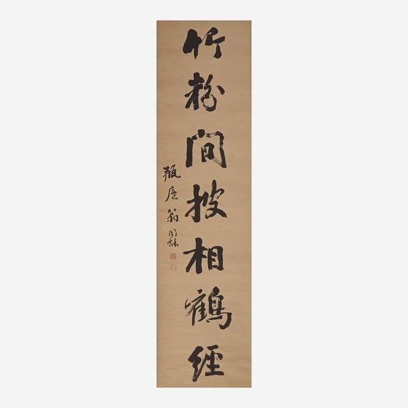 Weng Tonghe 翁同龢 书法对联一幅 (Chinese b.1830-d.1904)
