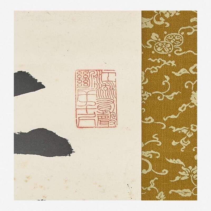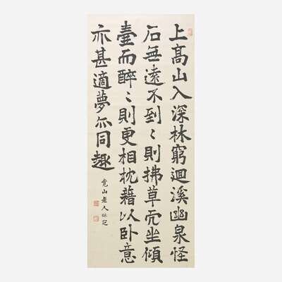 Ink on paper, inscribed and with two seals lower left and with a seal upper right, mounted as a hanging scroll.