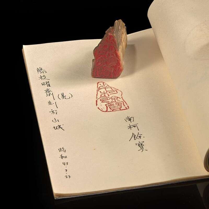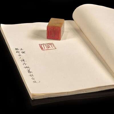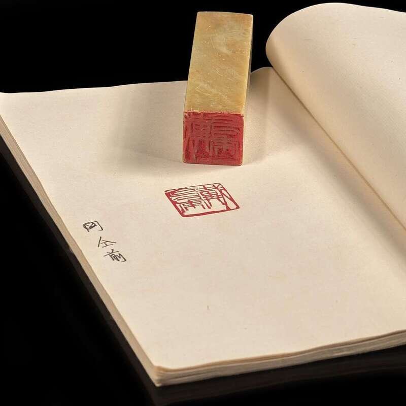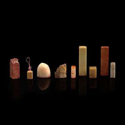Comprising nine soapstone and hardstone seals carved for or given to Dr. Nathan Sivin and his wife Carol by important artist and historian friends; including a transparant stone slender oval seal given by his teacher Aisin Goro Yu Jun; a soapstone seal carved and signed by Dr. Akira Fujieda, one of the foremost scholars of Dunhuang materials; a slender stone seal carved and signed by Lin Qianshi; a pair of seals carved and signed by artist Chen Dancheng; a red stone seal carved by artist Wei Letang; a dome-shaped white stone seal carved with "Chi Bi"("Red Cliff") given by Wang Jinguang; and two seals given by Manchuologist and literary scholar Guan Dedong. Six with inscribed sides. PLEASE NOTE, THE NOTEBOOKS WITH SEAL IMPRESSIONS ILLUSTRATED WITH THIS LOT ARE BEING SOLD WITH LOT 168, NOT THIS LOT.