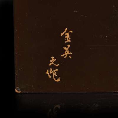 A Japanese lacquer writing box set with inlaid flowers and calligraphy, Suzuribako 日本时绘文具盒 19th/early 20th century ???????????