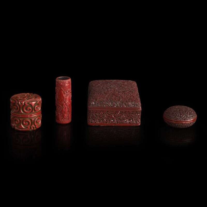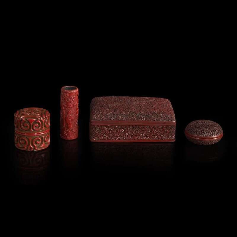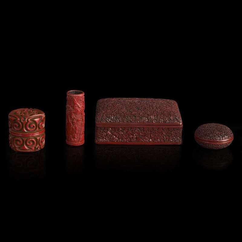 Group of four Japanese carved cinnabar lacquer items 日本漆器四件 18th/19th century ???????