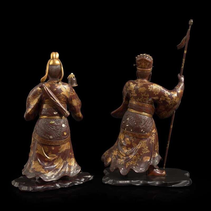 A pair of Japanese gilt-lacquered carved wood figures 日本鎏金木造像一对 Meiji/Taisho period ?????