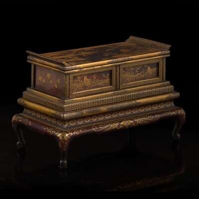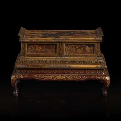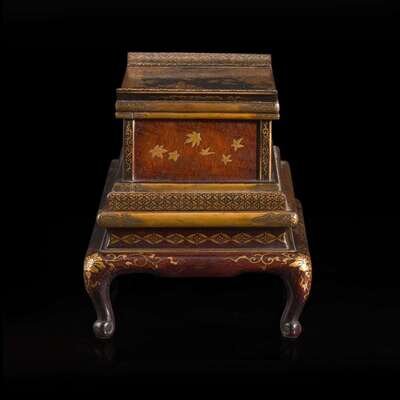 A small Japanese lacquer stand 日本漆金时绘木架 Meiji to Taisho period ?????