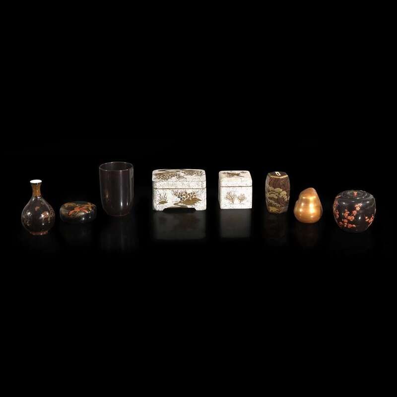 A group of eight assorted Japanese lacquer boxes and vases 日本漆器八件 19th to 20th century ???????