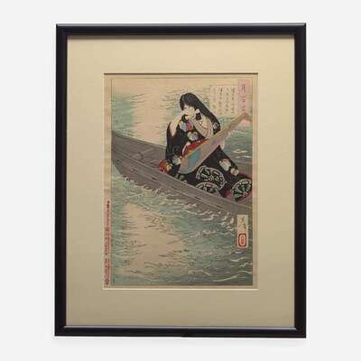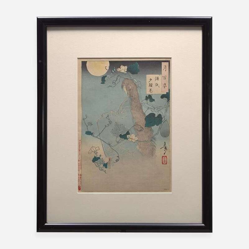 "Ariko no Naishi", 1886, and "The Yugao Chapter from the Tale of Genji", 1886; framed, matted and glazed.