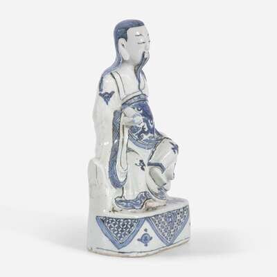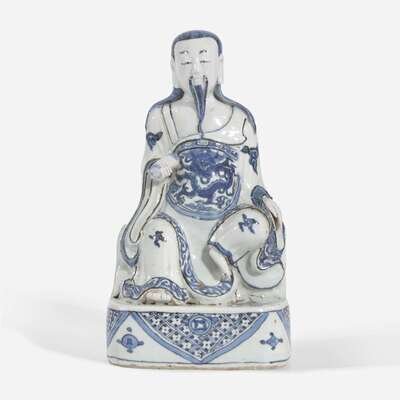 A Chinese blue and white porcelain figure of Xuanwu 玄武大帝青花瓷像 Late Ming dynasty ??