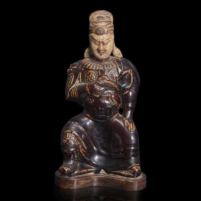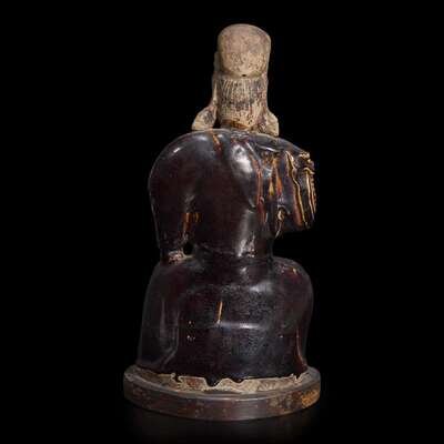 A Chinese brown glazed figure of Guandi 关帝像 Ming dynasty ?