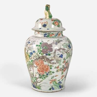 A very large Chinese famille verte decorated jar and cover 洋彩大盖罐 Kangxi period ???